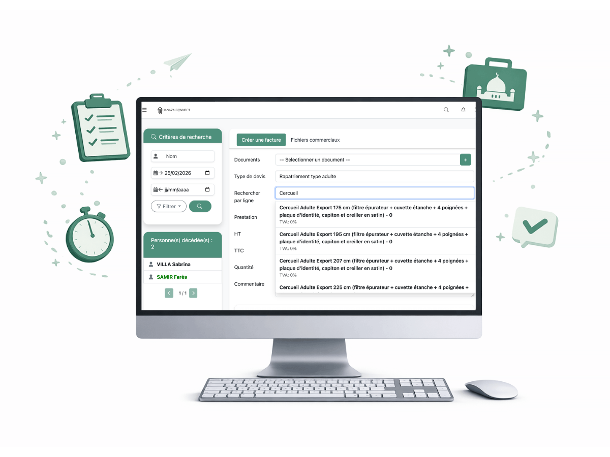 Janaza Connect vous permet de rentrer informatiquement toutes les informations de la déclaration de décès, du pouvoir et de la levée de corps.